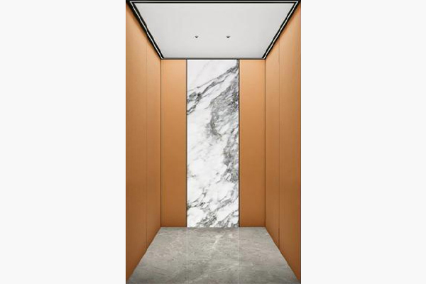 Zij- en achterwand: champagnegoud gezandstraalde cosmetische stalen plaat met houtnerf
